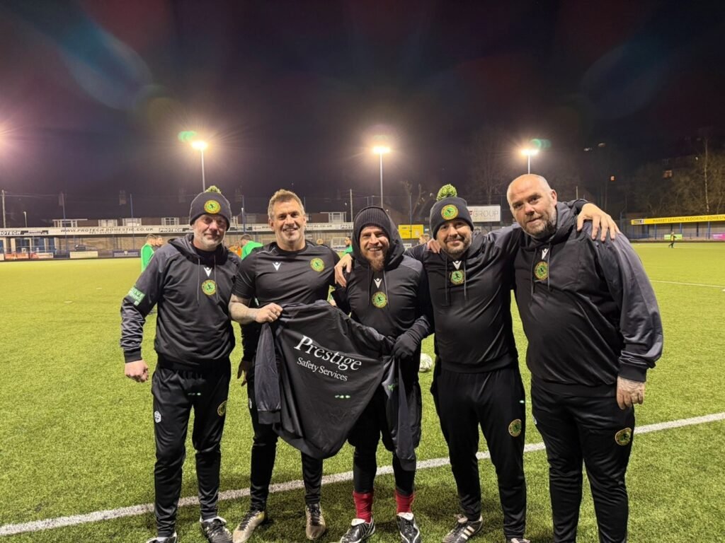 Our First Team Management group have been sponsored by Prestige Safety Services and director Alex Hailstone was at the Rocester game to hand over t-shirts, hoodies and coats for the team.